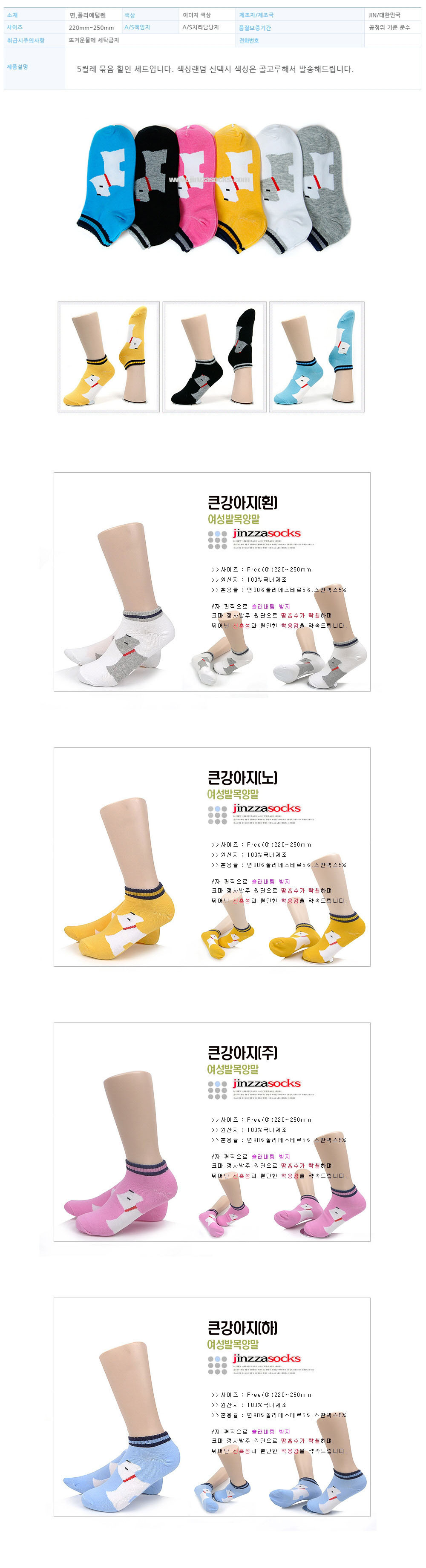 여성 캐주얼 인기 발목 양말 큰강아지 5켤레 묶음 이미지/