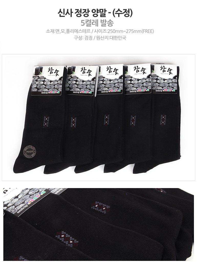 남자 신사 정장 양말 수정무늬 5켤레 묶음