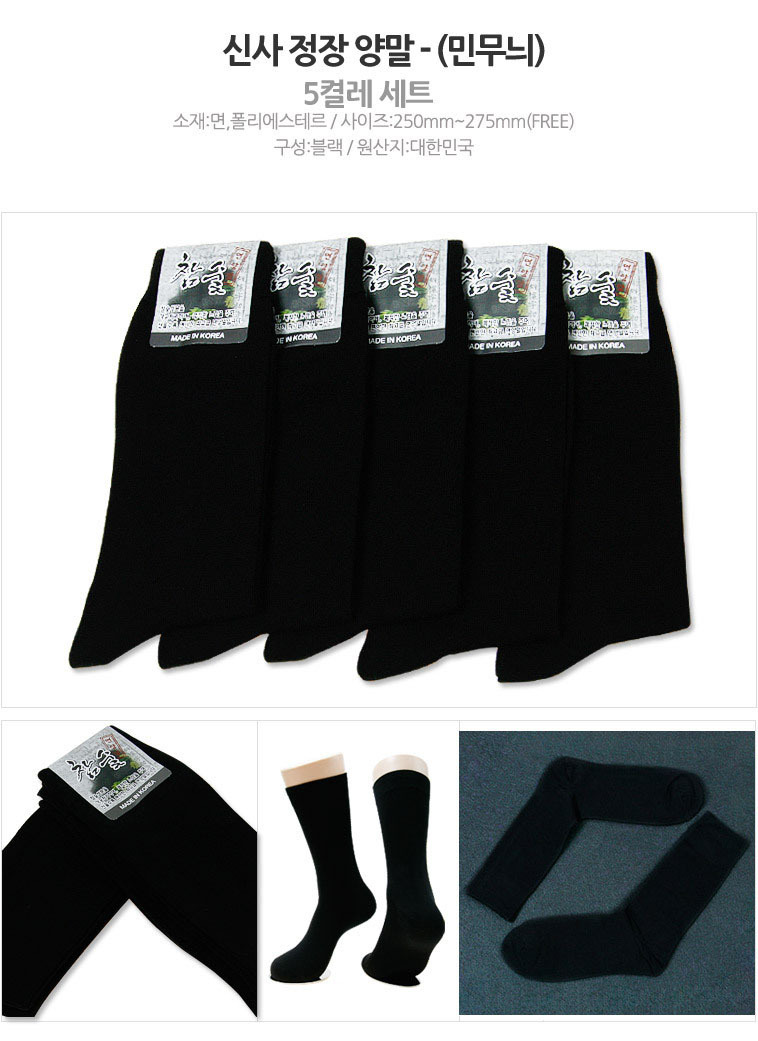 남자 신사 정장 양말 무지 검정색 5켤레 묶음