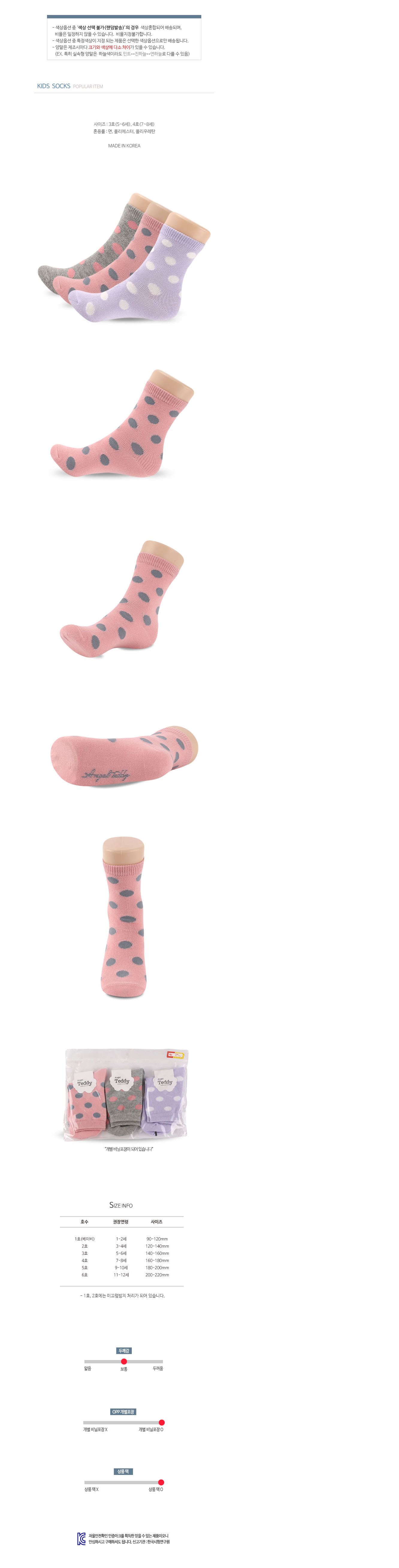 7세 6켤레 유아동양말 4호 8세 땡땡이 이미지/