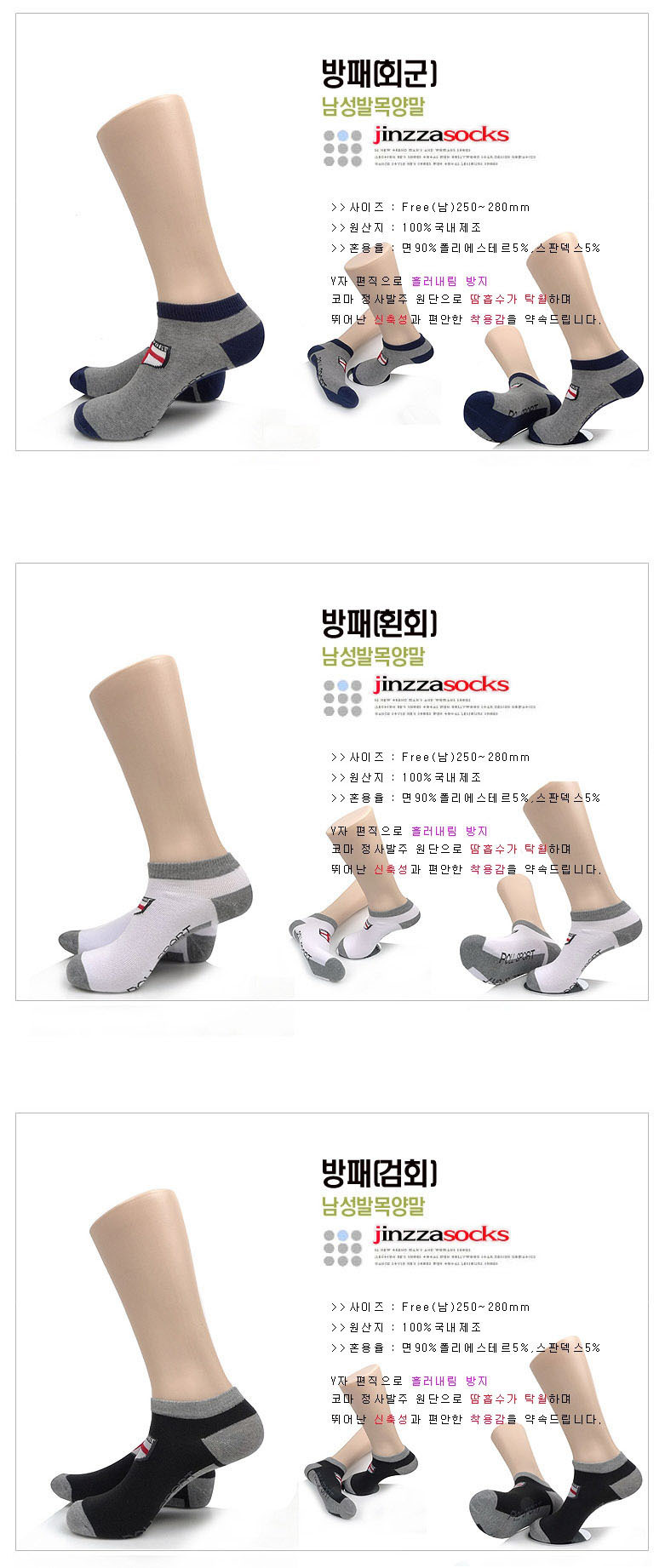 국산 남성 캐주얼 발목양말(방패) 3켤레 묶음 이미지/