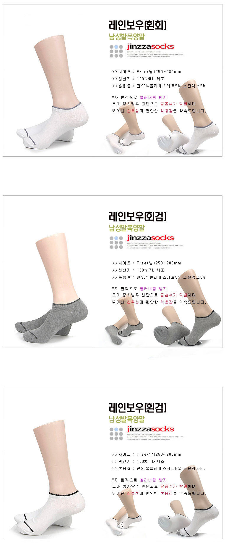 국산 남성 캐주얼 발목양말(레인보우) 3켤레 묶음 이미지/