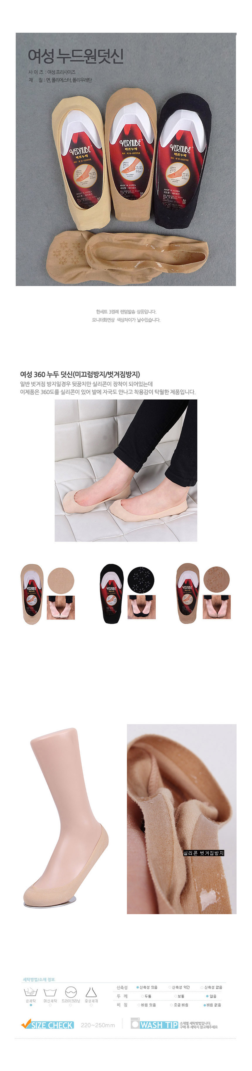 여성 벗겨짐방지 덧신 페이크 3켤레 양말세트 여자삭스 님자양말코디 패션양말 교복양말 패션삭