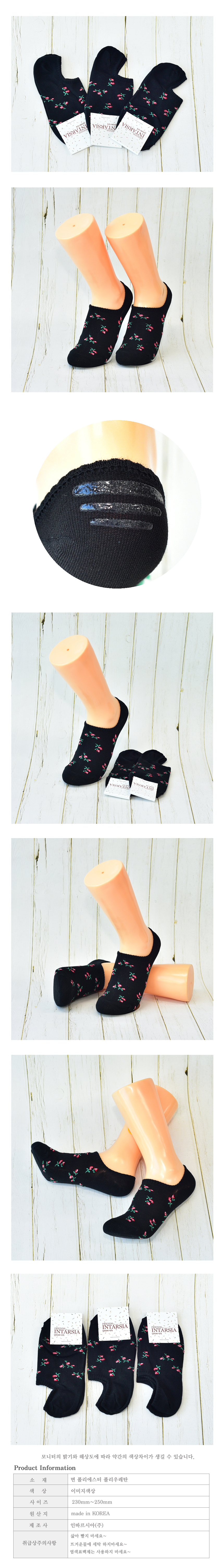 여성용 벗겨짐방지 꽃무늬 페이크삭스 여자덧신 여자양말검정 3켤레) 이미지/