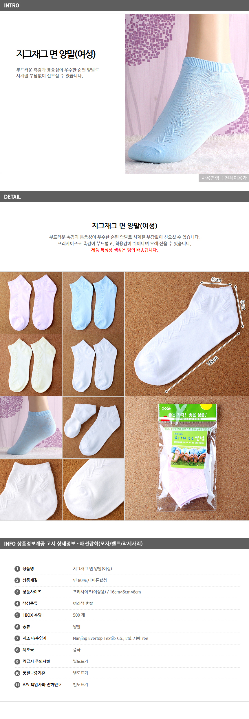 지그재그 면 양말(여성) 이미지/