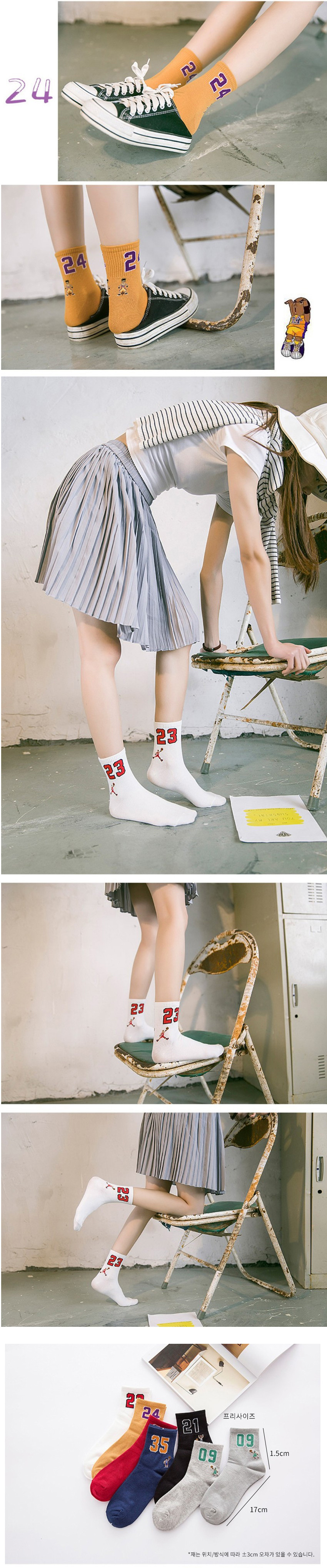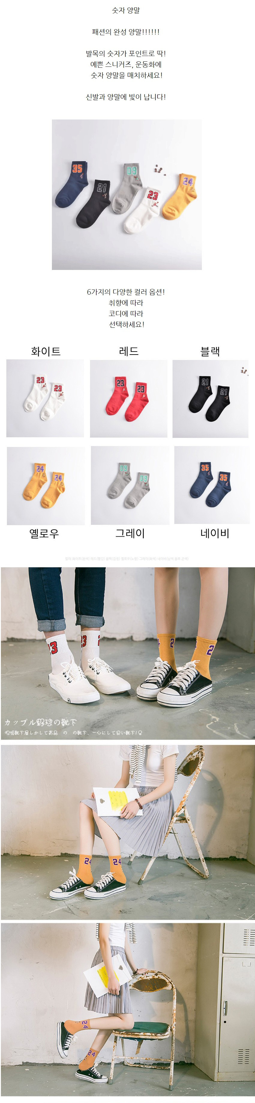 중목 숫자양말 레터링 양말 중학생 숫자 스트릿 여자 레깅스 크루 삭스 학생 긴목 이미지/