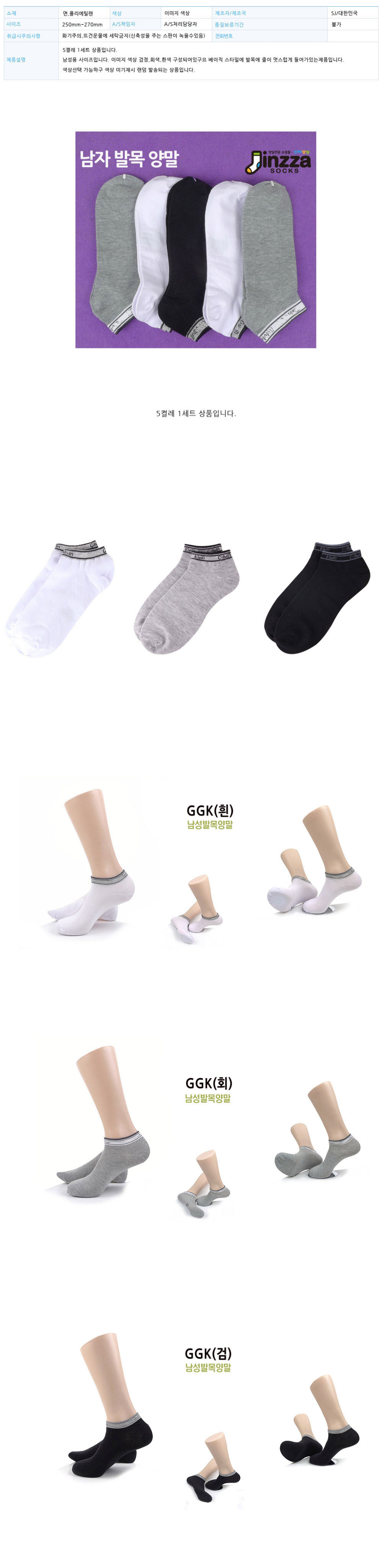 국산 남성 캐주얼 발목양말(GGK) 5켤레 묶음 이미지/