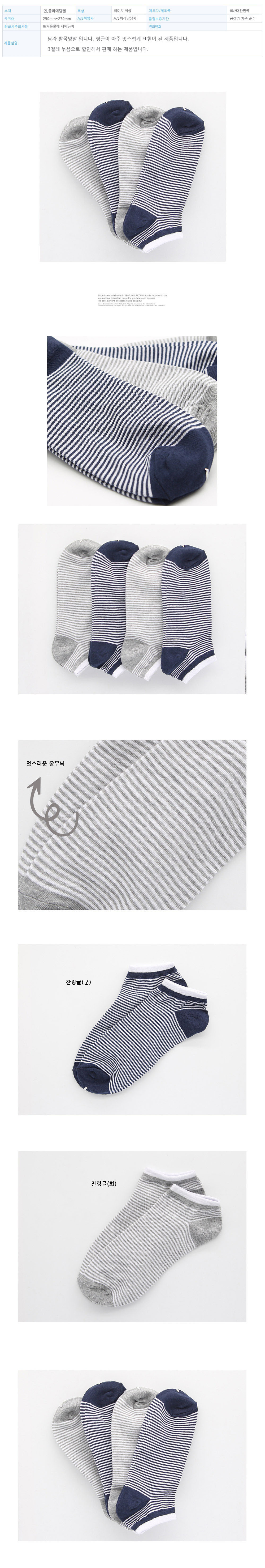 국산 남성 캐주얼 잔줄무늬 발목양말 3켤레 묶음 이미지/
