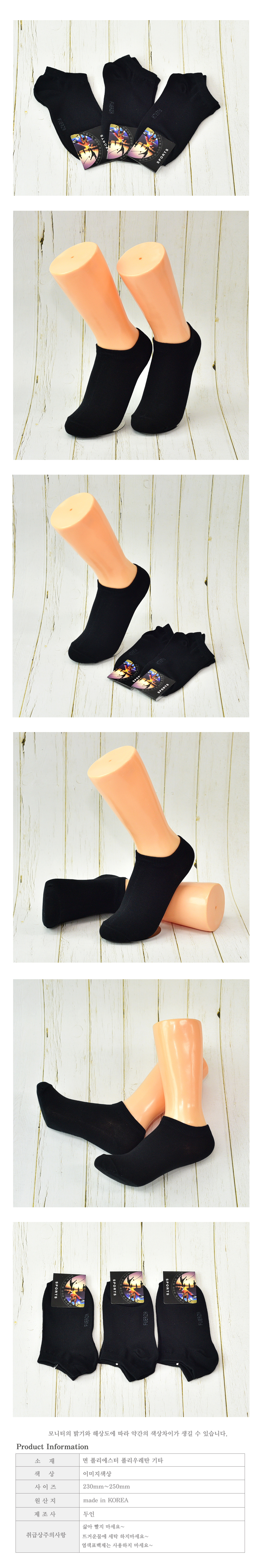 여성용 무지 스포츠 발목양말 여자양말(검정 3켤레)
