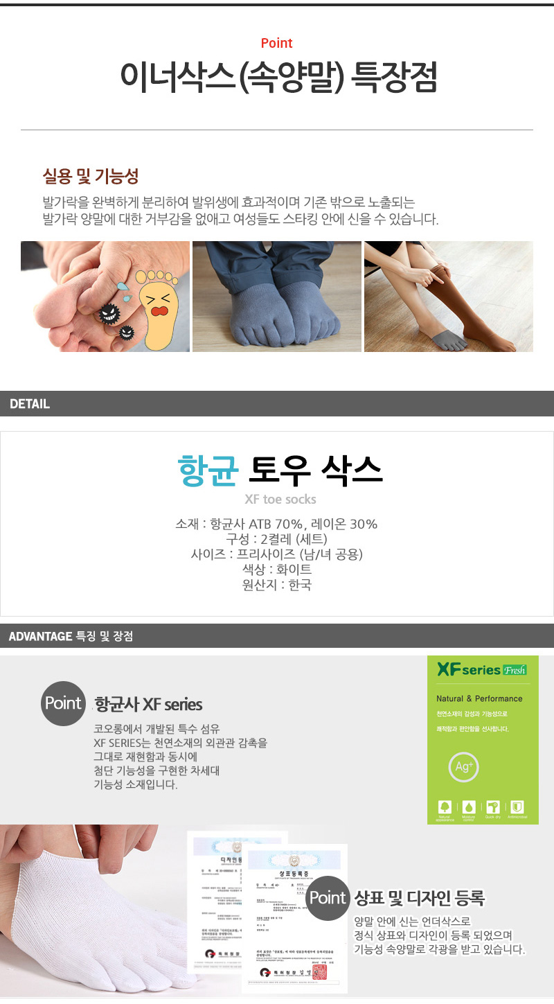 XF 항균 발가락양말 (2켤레)세트 토우삭스 토우캡 국산 항균사