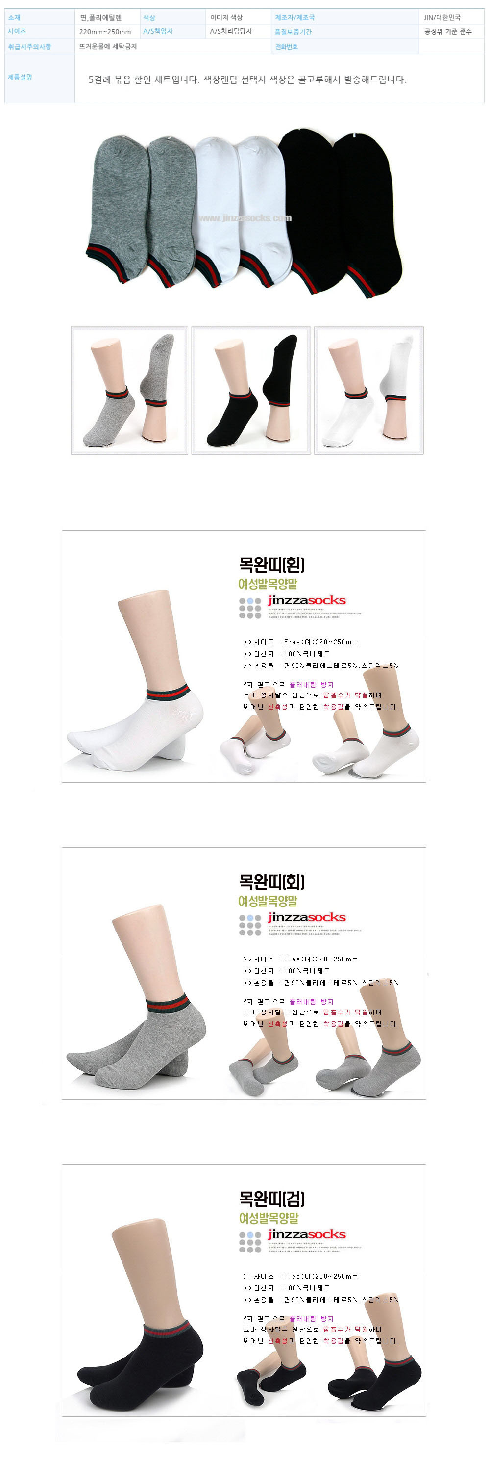 여성 캐주얼 인기 발목 양말 목완띠 5켤레 묶음