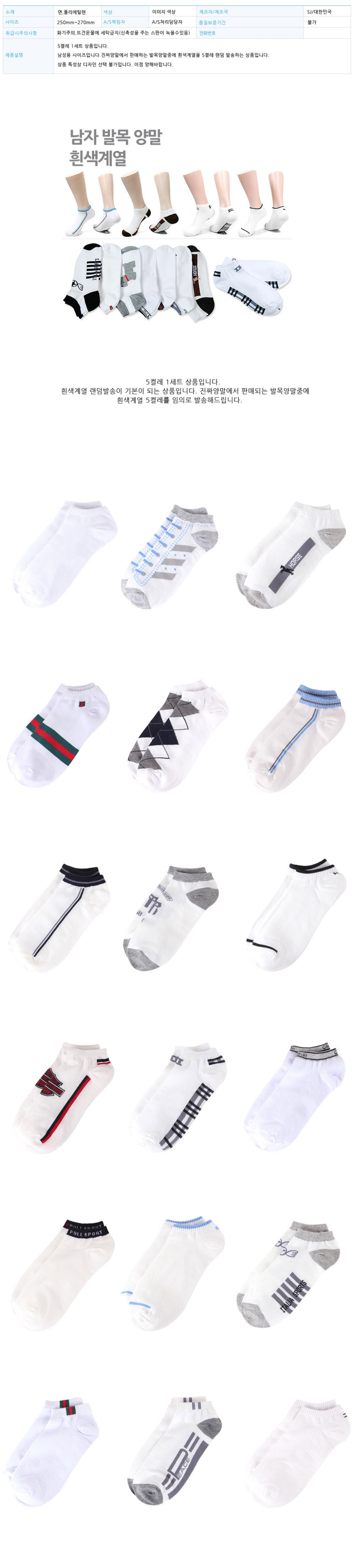 국산 남성 캐주얼 발목양말(흰색계열) 5켤레 묶음 이미지/