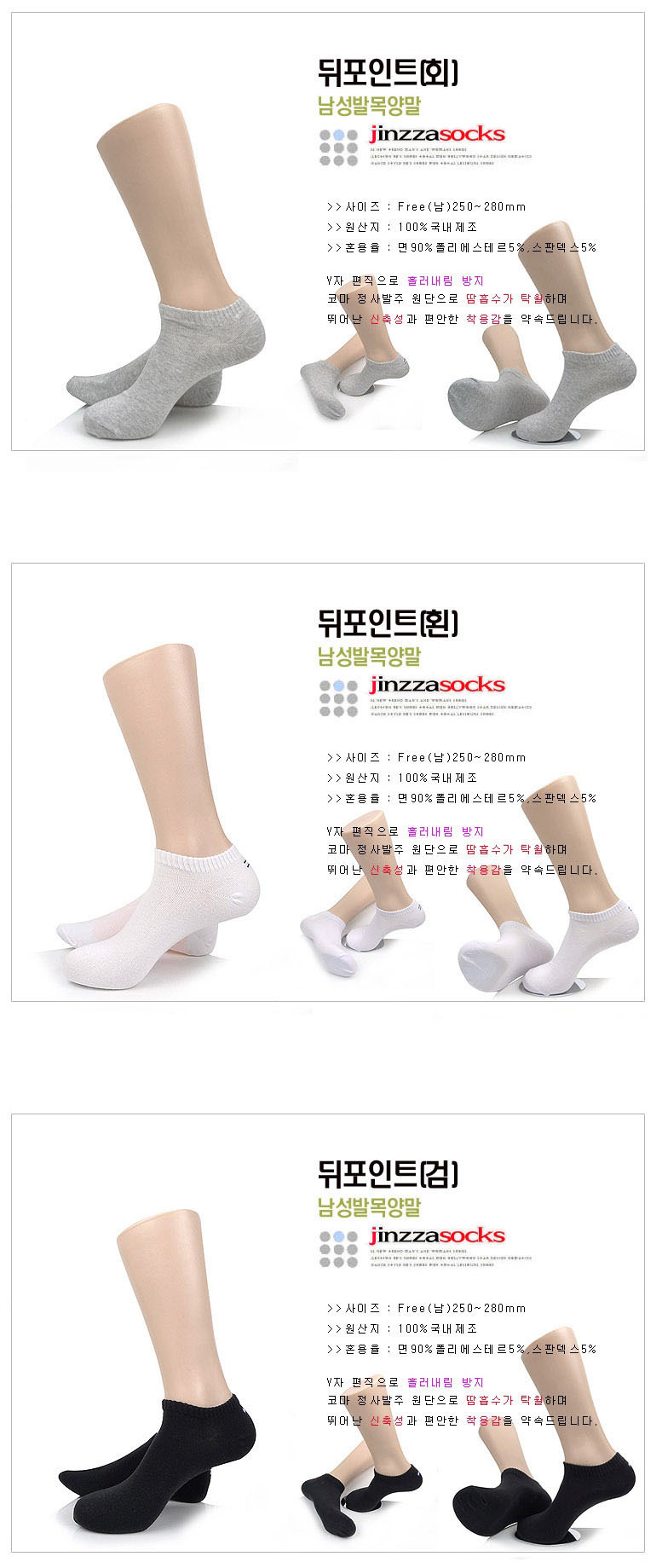 국산 남성 캐주얼 뒷포인트 발목양말 3켤레 묶음 이미지/