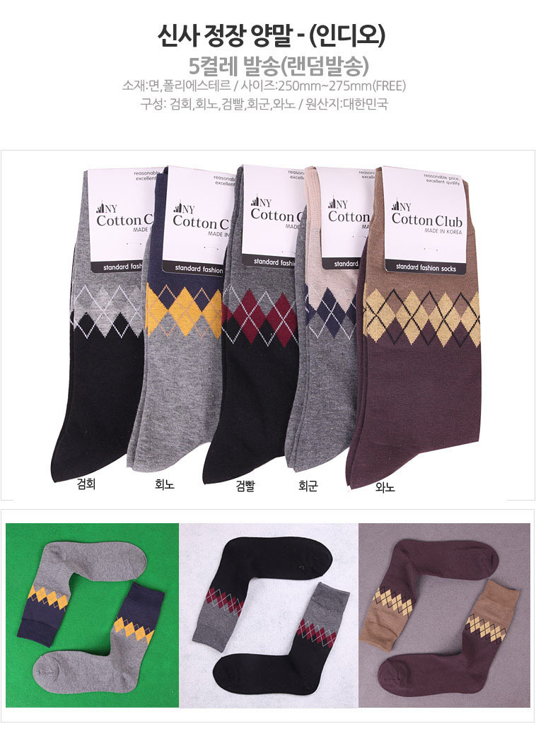 남자 신사 정장 양말 인디오 5켤레 묶음 이미지/