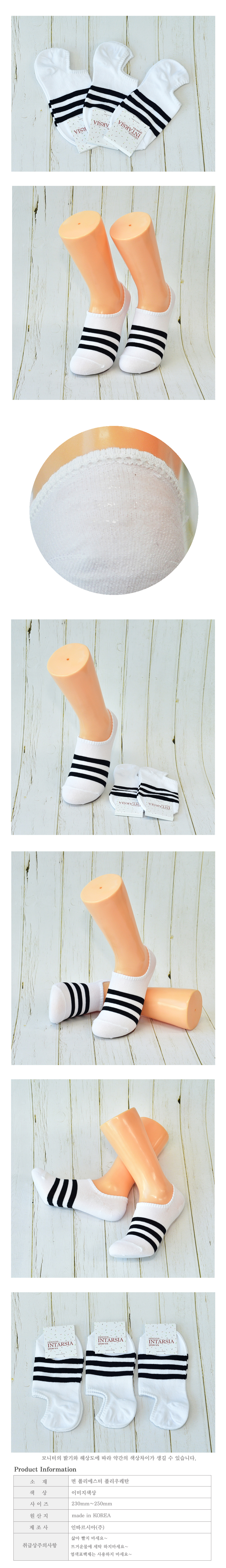 여성 벗겨짐방지 검정색줄 페이크삭스 여자덧신 여자양말흰색 3켤레) 이미지/