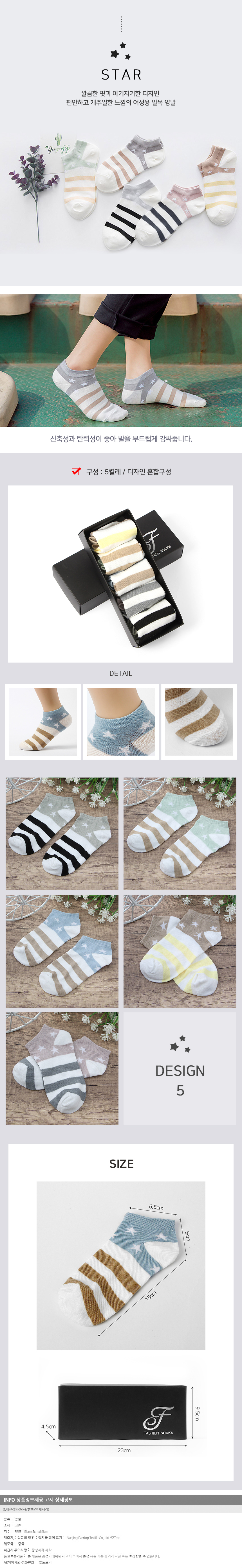 스타 여성용 발목 양말 5켤레세트