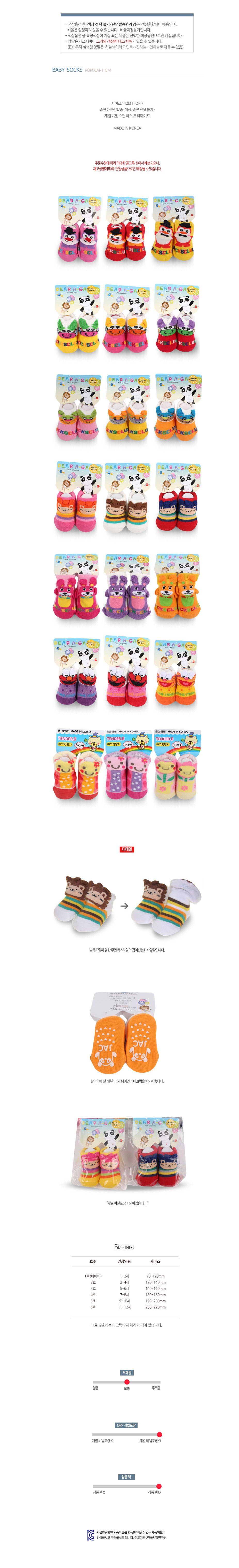 1호 여자아기 무압박 5켤레 양말 동물캐릭터 이미지/