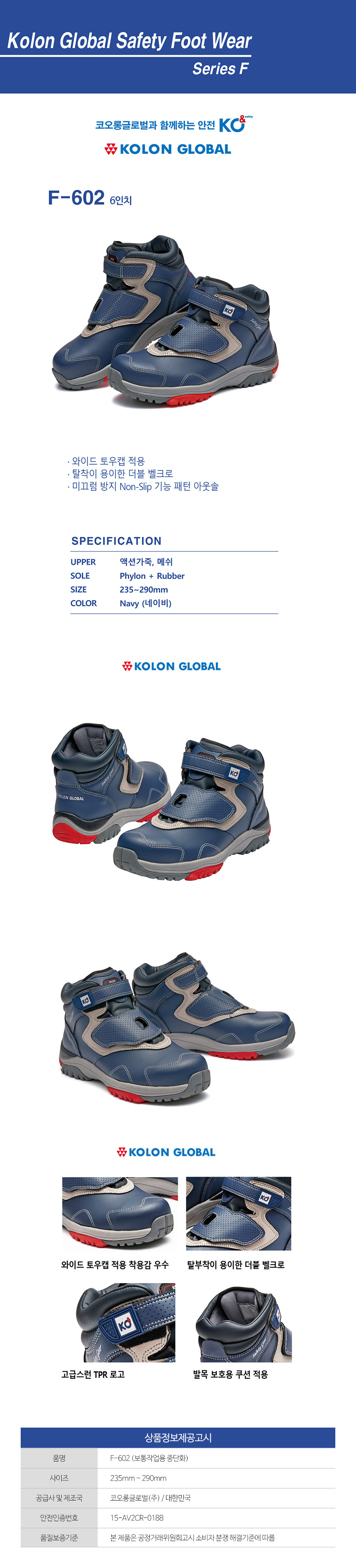 코오롱 안전화 찍찍이 작업화 공장신발 현장화 6in D 이미지/