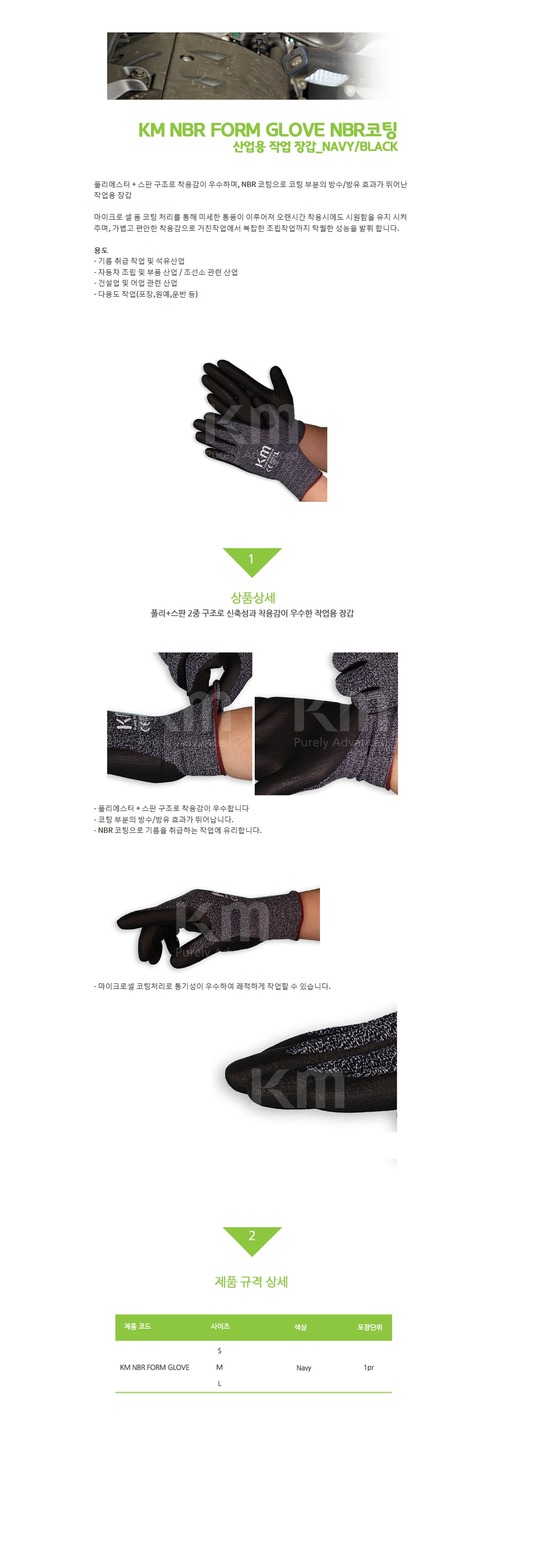 케이엠KM 코팅 폼 글러브 산업용 작업 장갑 네이비 블랙 이미지/