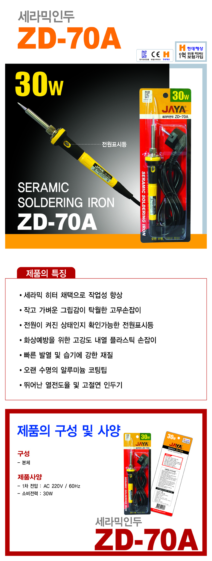 자야 전기 쎄라믹인두 ZD-70A