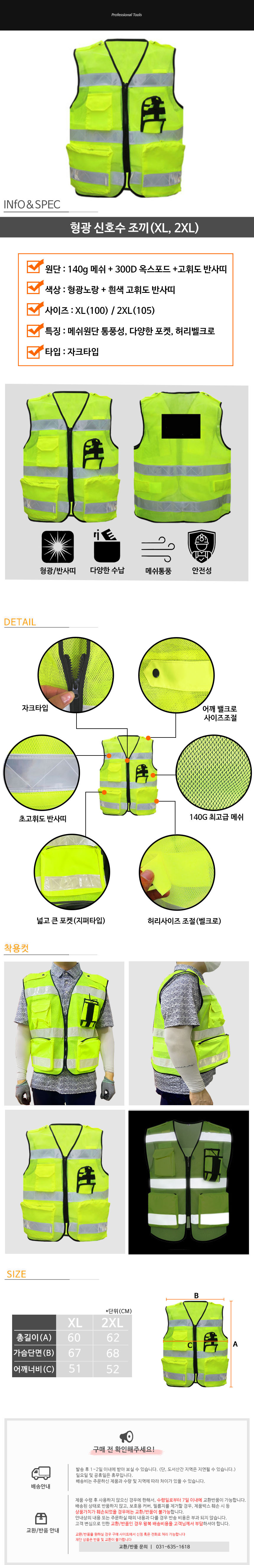 신호수조끼 야광조끼 경찰형광 안전조끼 망사 교통 반사 고휘도 XL 2XL 이미지/