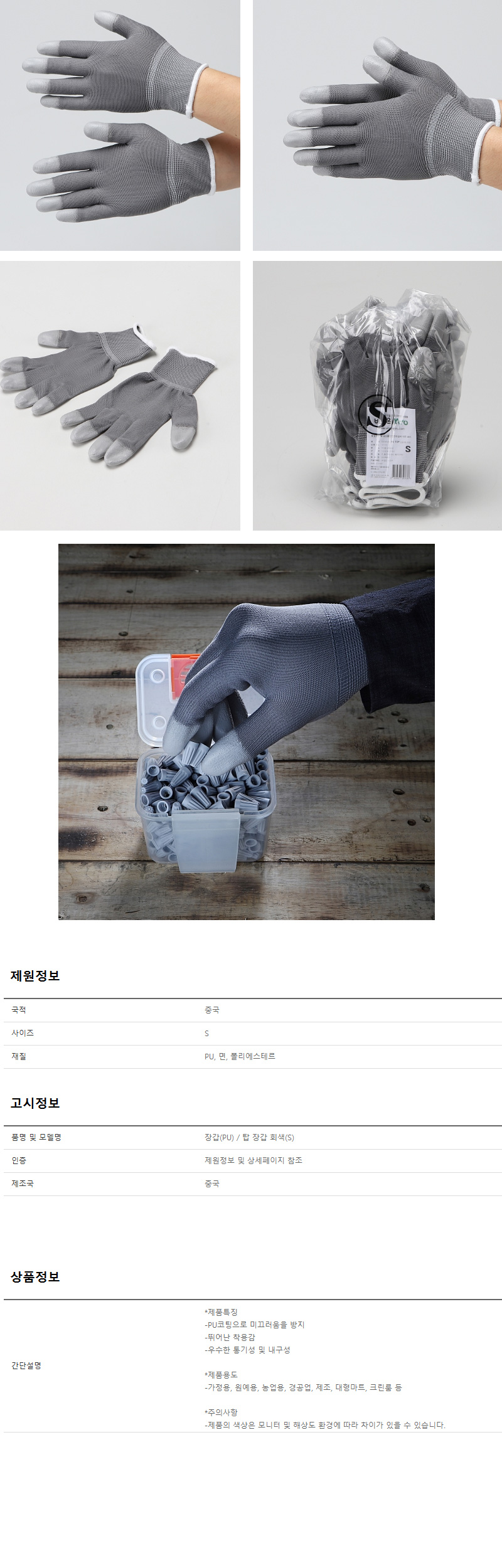 장갑 PU 비츠온 TOP장갑회색 S 10개 빨간장갑 안전장갑 목장갑 이미지/