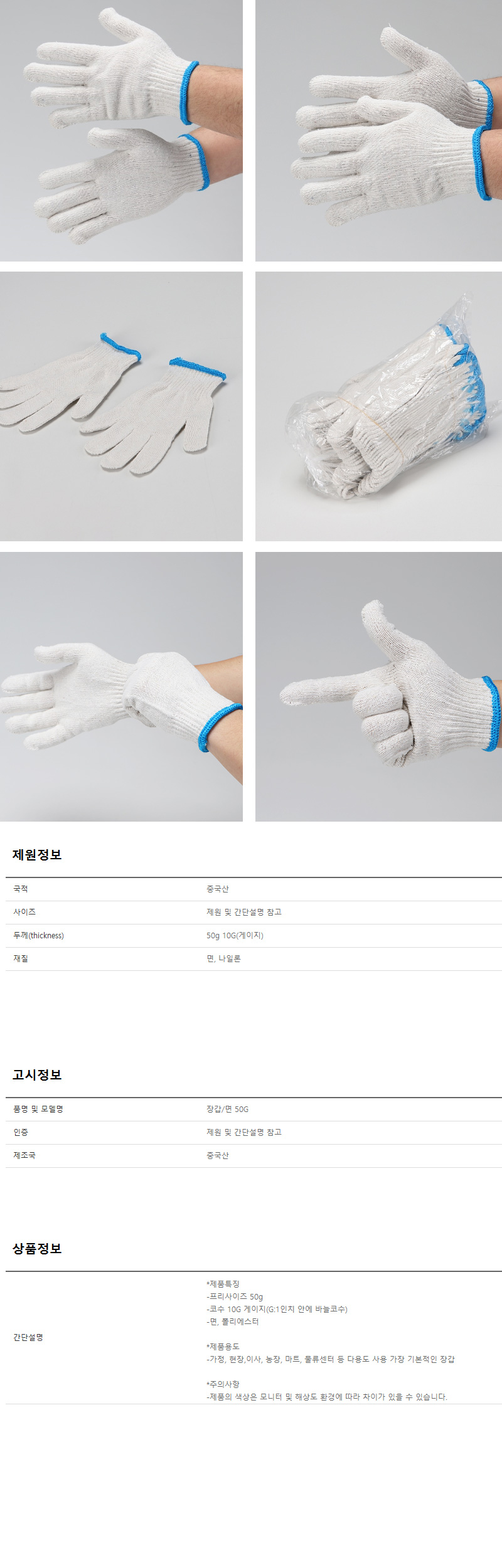 장갑 목장갑 비츠온 면50G 청띠 10개 빨간장갑 안전장갑 목장갑