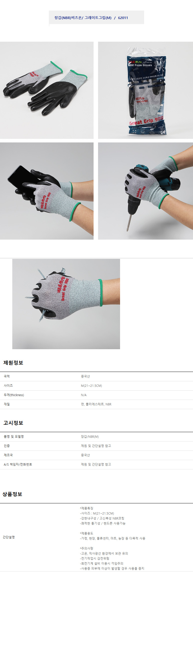 장갑 NBR 비츠온 그레이트그립 M 빨간장갑 안전장갑 목장갑 이미지/
