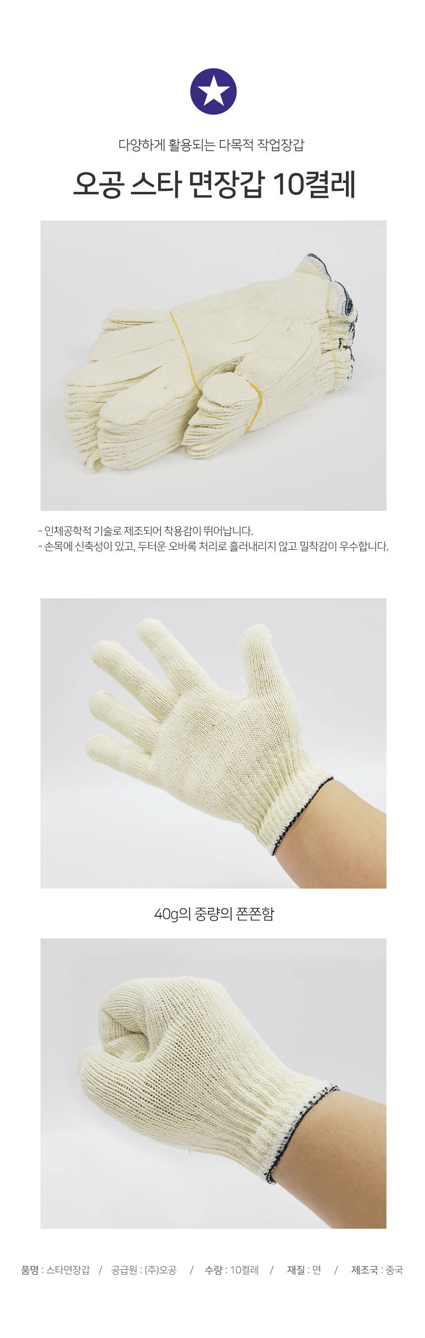 오공 다목적 작업장갑10개/ 대용량 면장갑/ 목장갑 이미지/