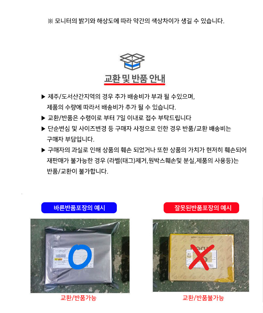 • 단순 고객변심에 의한 반송 또는 교환의 경우(소요경비)