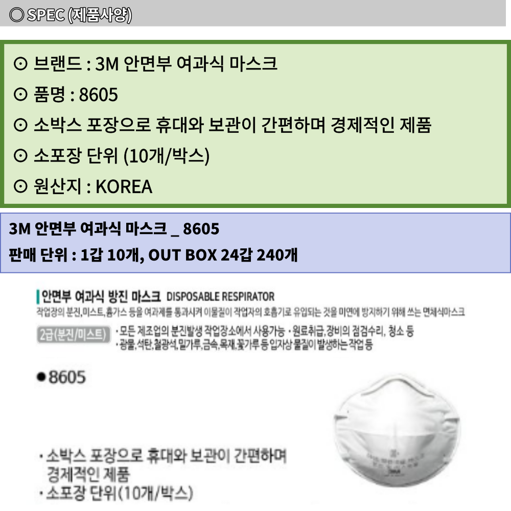 3M 분진 미스트 2급 안면부 여과식 방진 마스크 8605