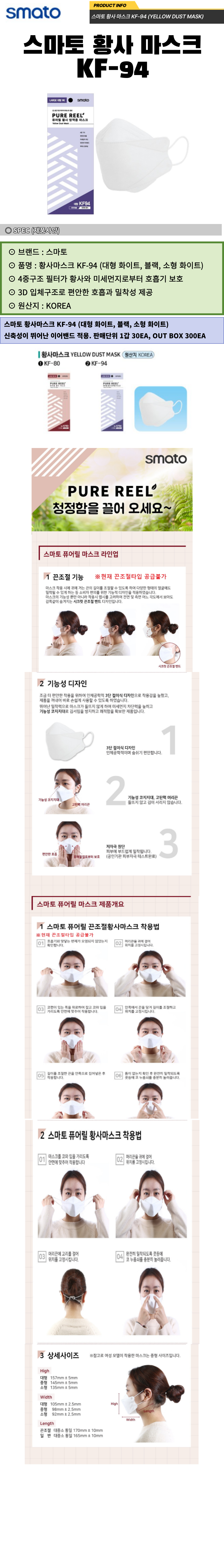 스마토 안전 방역 환절기 미세먼지 황사 마스크 KF-94 대형 화이트 이미지/