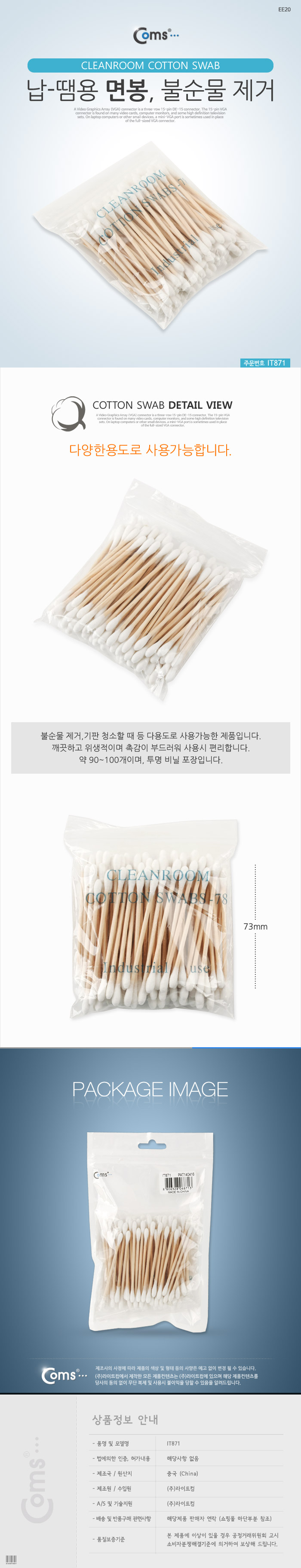 Coms 납땜용 면봉 불순물 제거 이미지/
