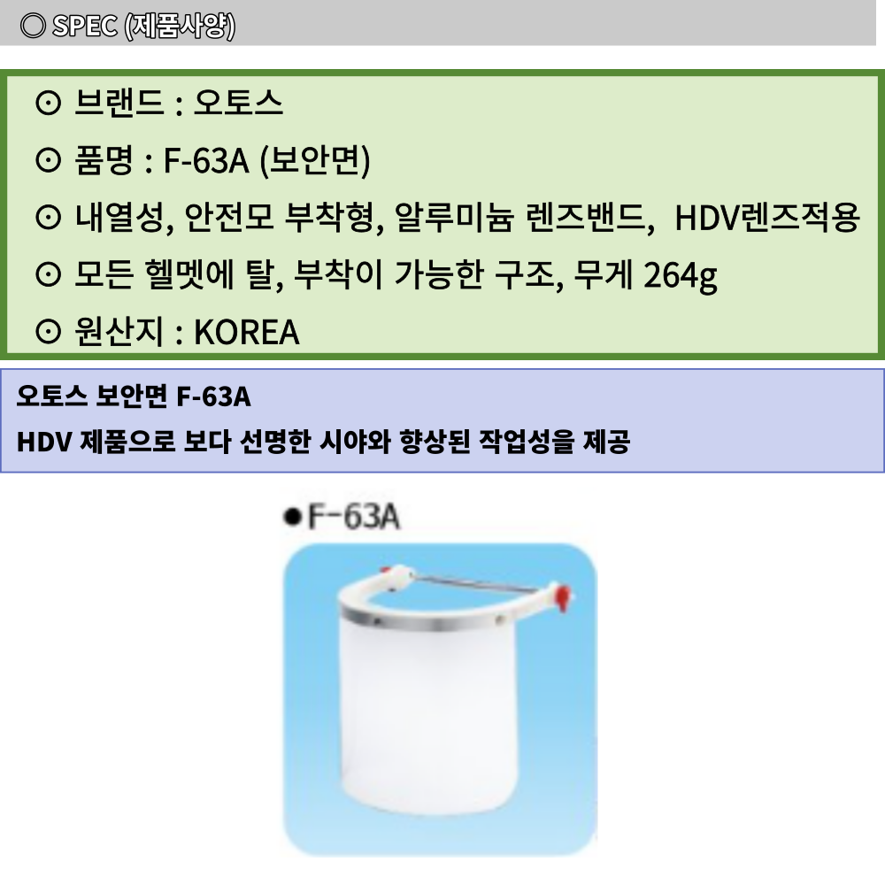 오토스 안면 보호 투명 용접 보안면 F-63A