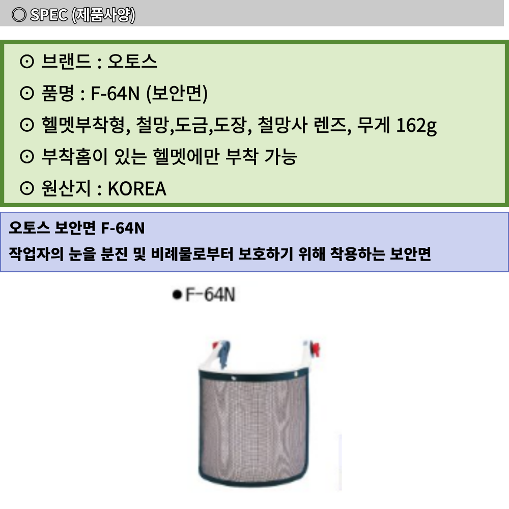 오토스 안면 보호 철망 용접 보안면 F-64N