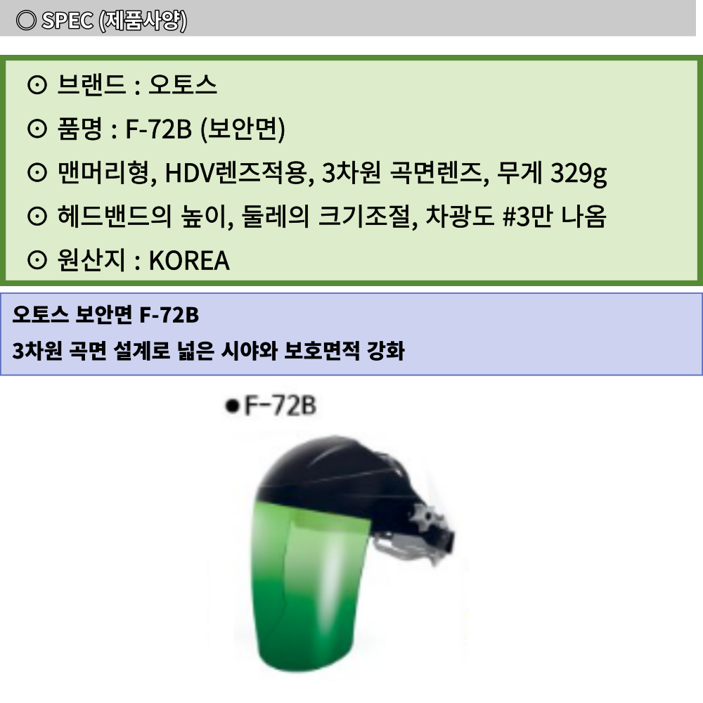 오토스 안면 보호 차광 용접 보안면 F-72B