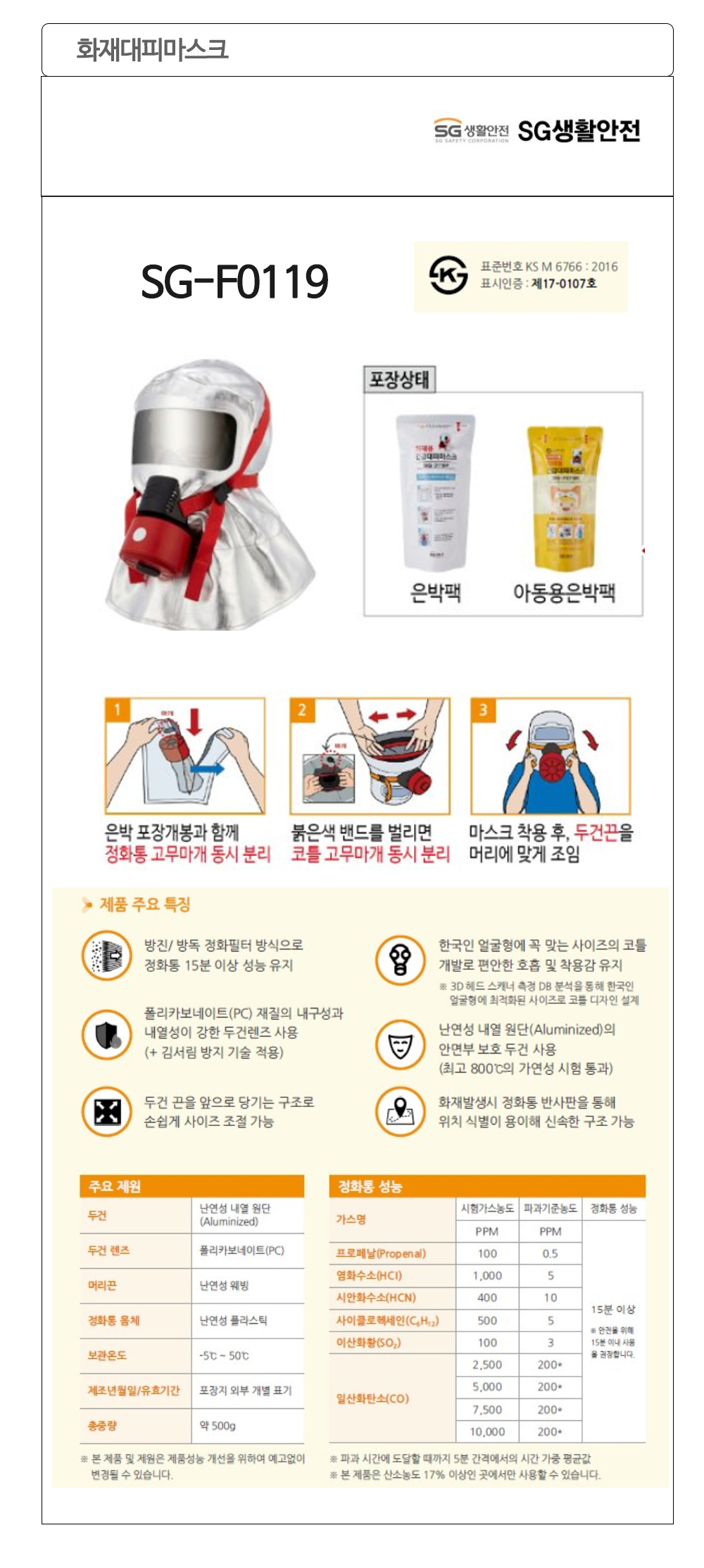 SG생활안전 화재대피마스크 SG-F0119 일반 이미지/