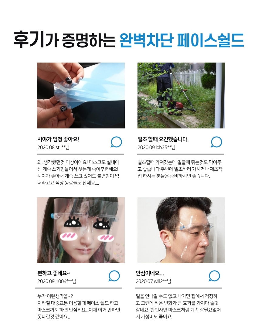 투명 마스크 페이스쉴드 실드 안면 보호 비말 차단 벌초 네일샵 제초 미용실 대면 필수품