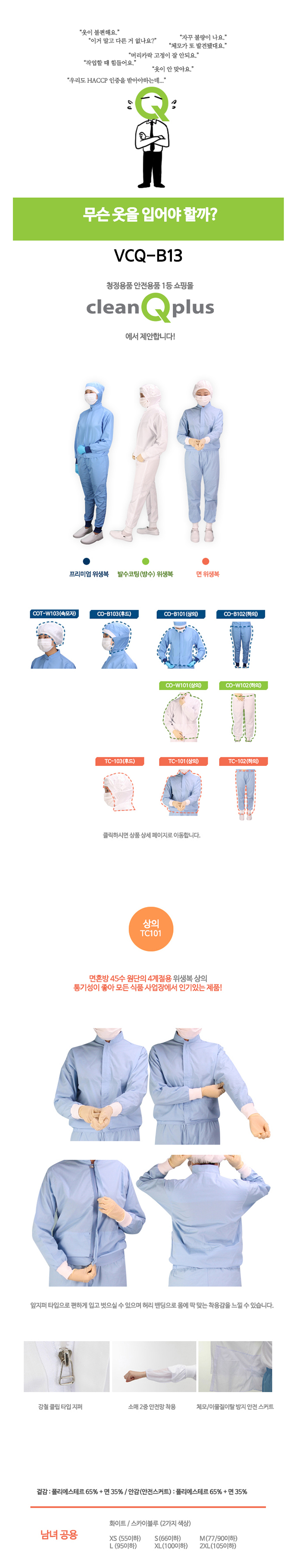 VCQ-B13 면혼방 위생복 상의 이미지/