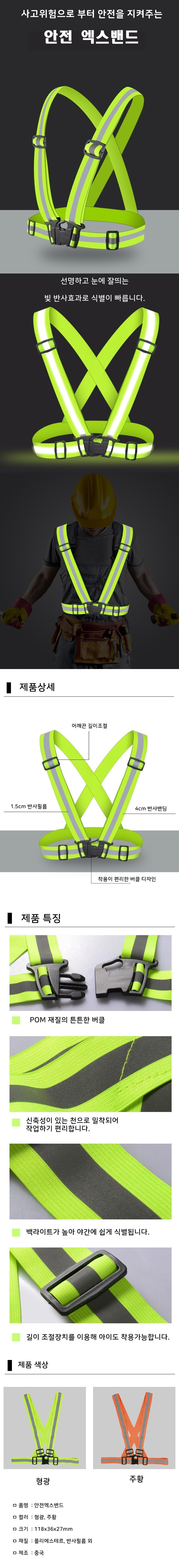안전 엑스밴드 형광 주황 야간 작업