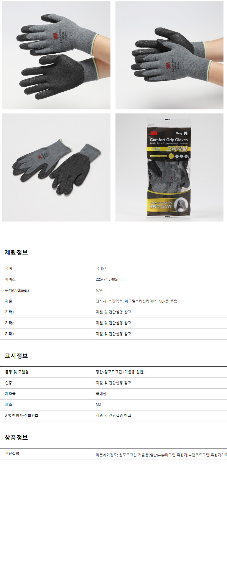 장갑 NBR 3M컴포트그립 겨울용 일반 L 빨간장갑 안전장갑 목장갑