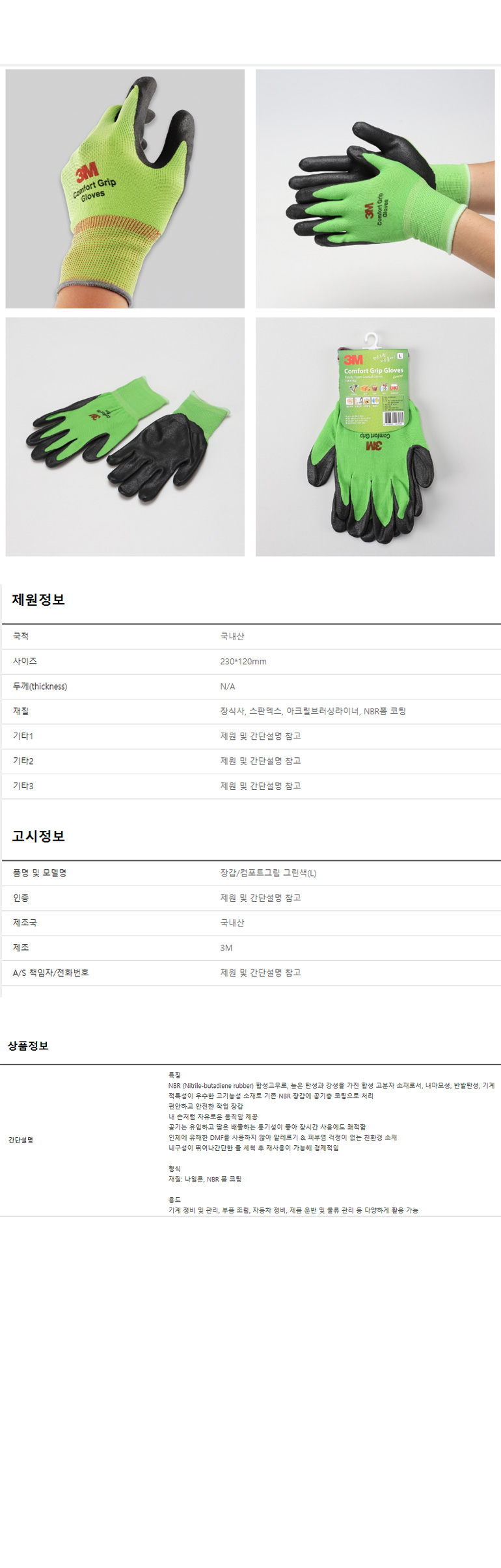 장갑 NBR 3M컴포트그립그린색 L 빨간장갑 안전장갑 목장갑