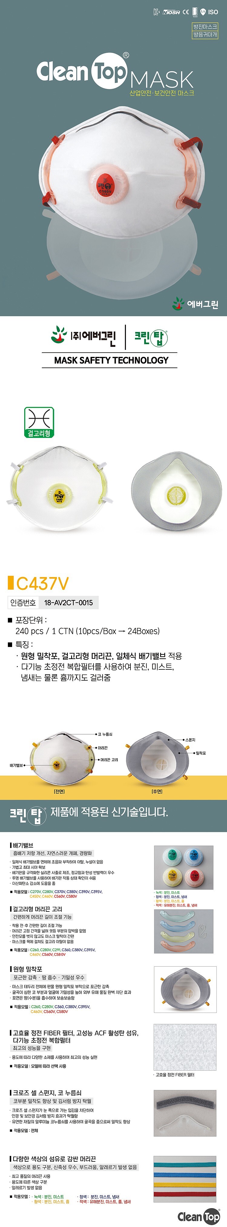 걸고리형 머리끈고리 배기밸브 1급 방진마스크 240EA
