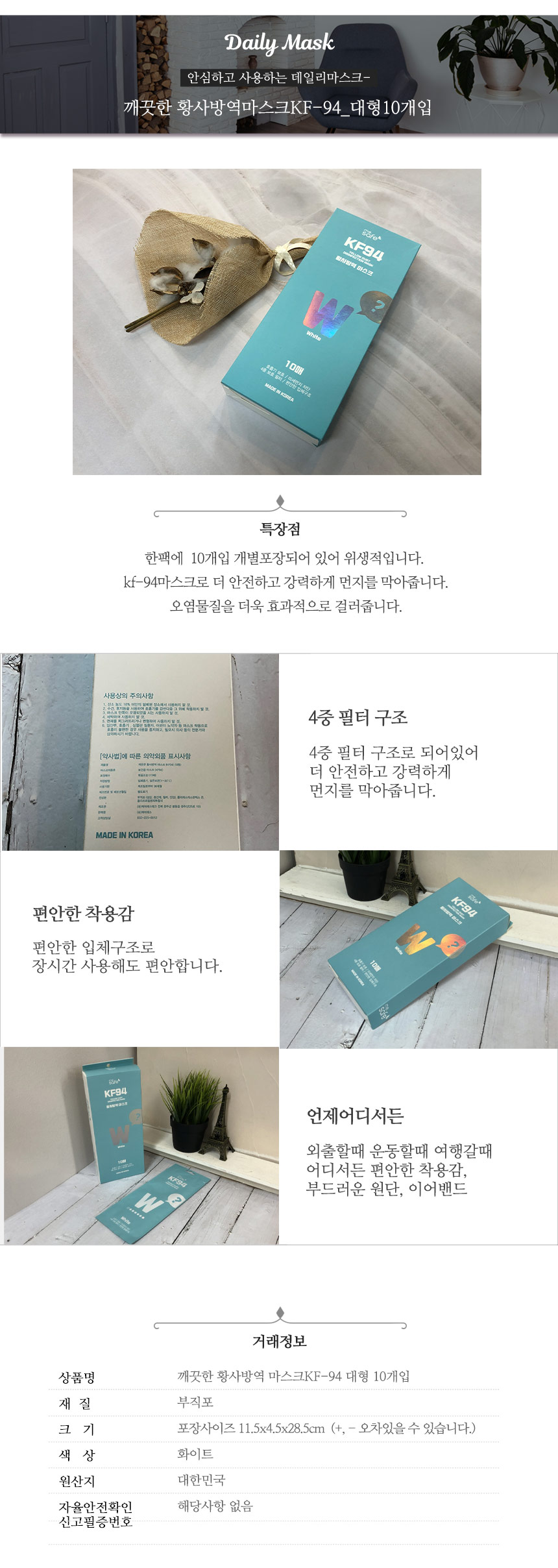 모델명 깨끗한 황사방역 마스크KF-94 대형 10개입