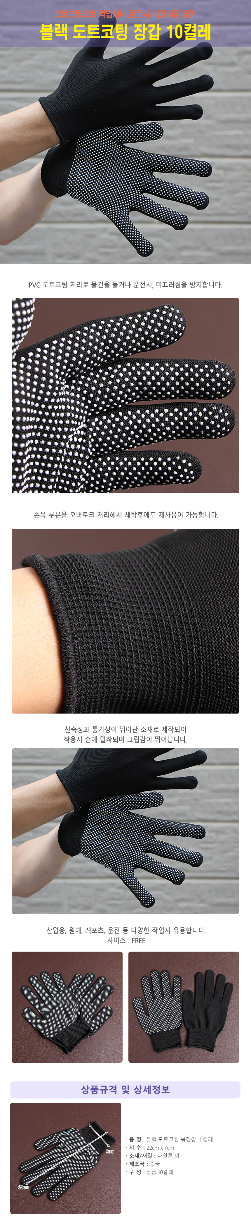 10켤레 블랙 도트코팅 목장갑
