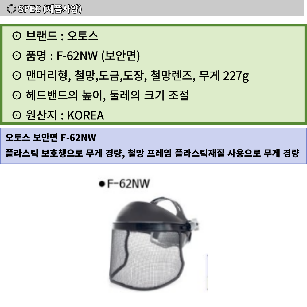 오토스 안면 보호 철망 용접 보안면 F-62NW 이미지/
