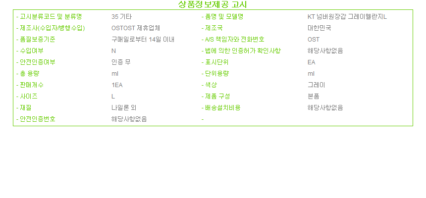 KT 넘버원장갑 그레이멜란지L 안전장갑 작업장갑 이미지/