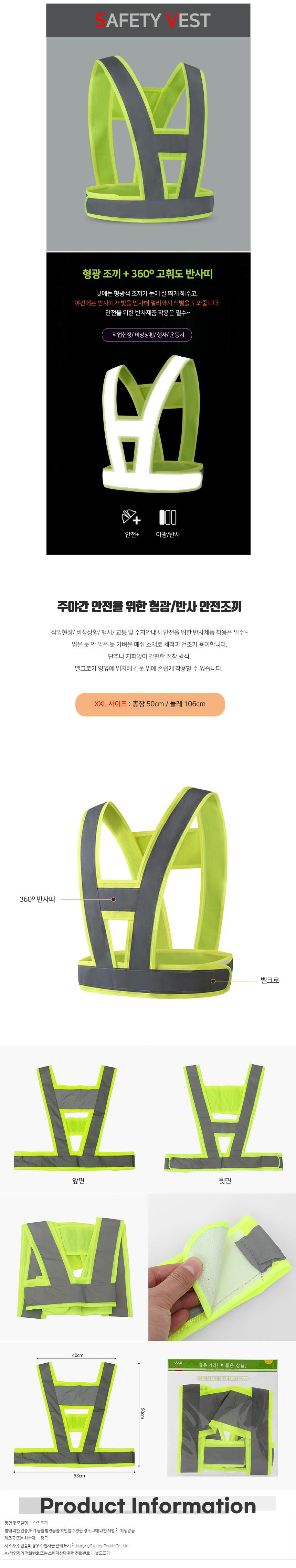 360도 반사띠 안전조끼 그린 XXLx3개 산업안전용품