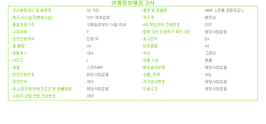 nbr 스판폼 코팅장갑 L 안전장갑 작업용