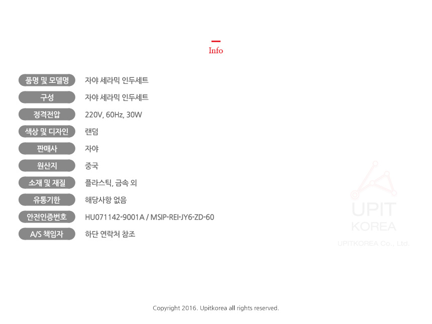 1. 품명 및 모델명 : 상세정보별도표시